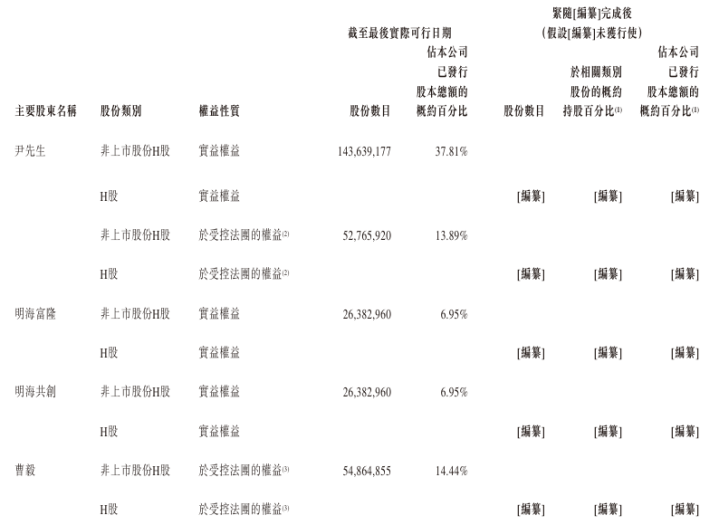 紧接编纂完成后(假设编纂未获行使),尹先生于公司股东会可行使的投票权合计将达约编纂%,编纂后尹先生、明海富隆及明海共创将构成公司的控股股东。